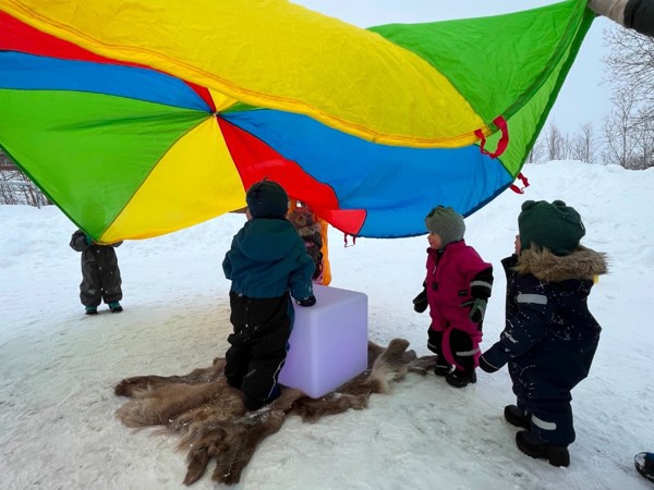 Vi samarbeider også med skolen i forbindelse med førskolebarna, men besøkene til skolens uteområde starter allerede i 1 årsalderen.